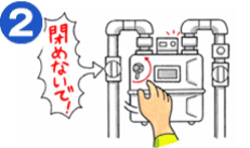 - ガス栓の閉め忘れや、ガス機器の止め忘れがあった場合は、もう一度復帰手順に従い操作してください。