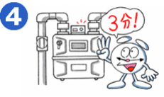 - 3分経過後も、ガスが止まったままで赤ランプが点滅している場合は、もう一度ガス栓の閉め忘れやガス機器の止め忘れがないか確認してください。